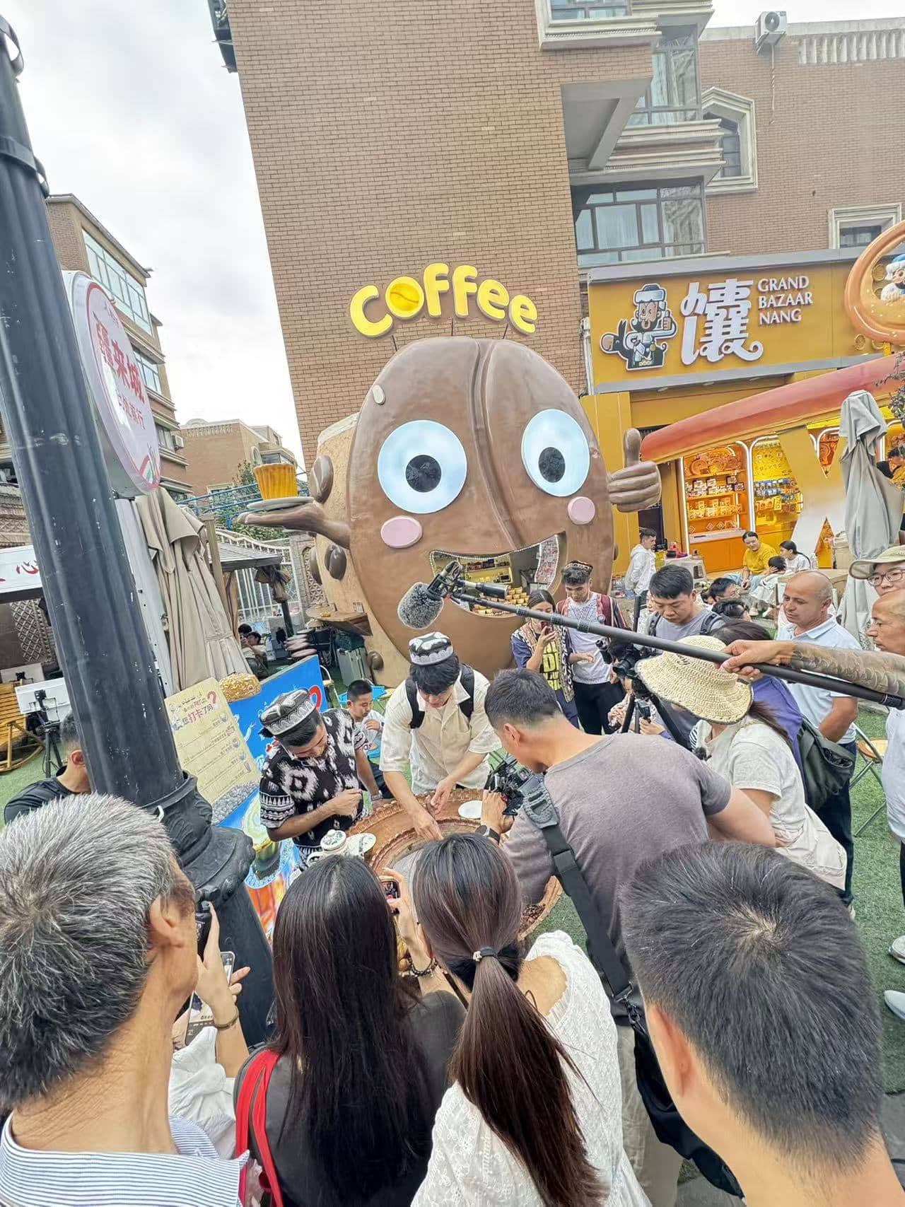 主持人在新疆国际大巴扎学习制作馕咖啡