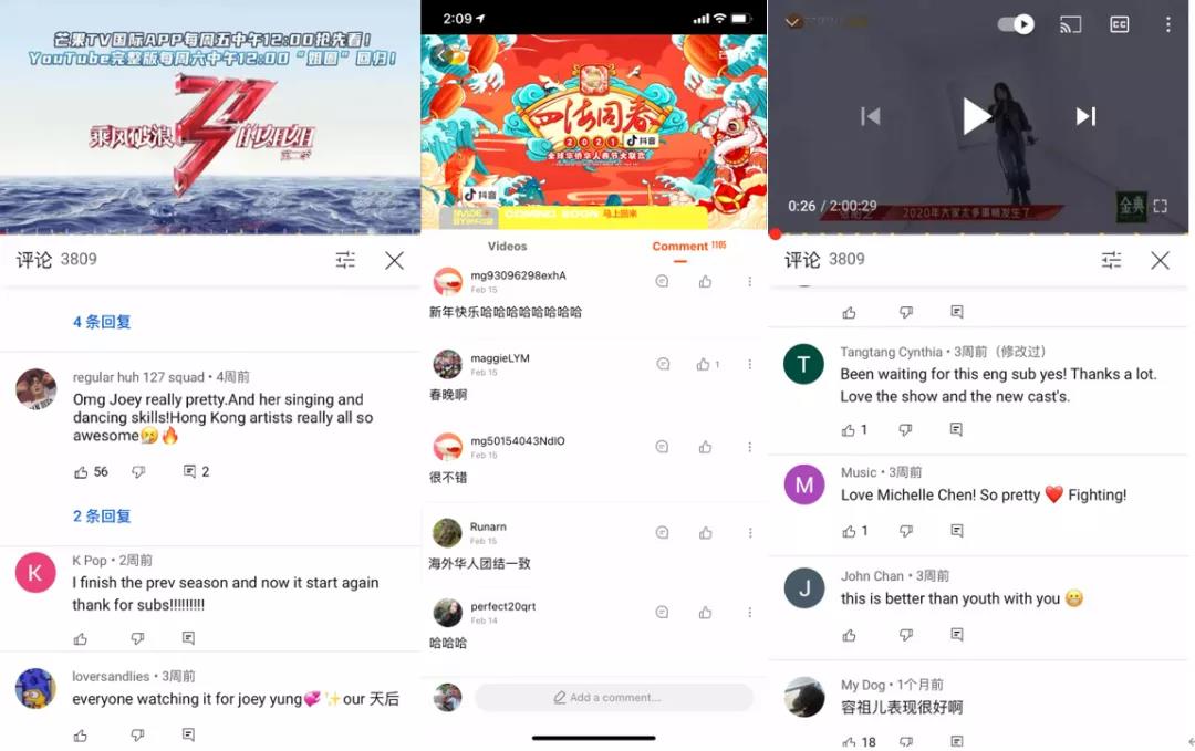 芒果TV国际整合多项资源,做好新春特别运营,对《乘风破浪的姐姐2》《明星大侦探6》《玲珑狼心》等重点项目进行热推,开展《2021湖南卫视春节联欢晚会》《2021全球华侨华人春节大联欢》等项目的点直播运营。其中,2月4日开展的《2021湖南卫视春节联欢晚会》,以“金鹰女神”宋茜和青年歌手蔡徐坤作为闪图热推,以青春元素引起海外用户的共鸣。2月12日中国农历大年初一开展的《2021全球华侨华人春节大联欢》点直播运营,在国际APP端、PC端首页首屏开展春节华人主题的直播点播全曝光,多语种轮番推荐,受到海外用户关注,引发海外网友热议。