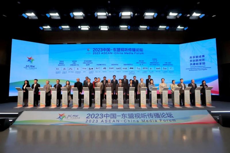 10月23日,第五届中国—东盟视听周重要活动之一, 2023中国—东盟视听传播论坛在广西南宁成功举办。以“共享新成果、共创新视听、共建新家园”为主题,论坛分为主旨演讲、主题发言、圆桌对话三个阶段,同时举办“一对一”商务洽谈会,现场设置广电视听展。国家广播电视总局副局长杨小伟,广西壮族自治区党委常委、宣传部部长陈奕君,马来西亚通讯与数字部部长代表、马来西亚广播电视台台长拿督苏海米·苏莱曼,柬埔寨新闻部副国务秘书庞纳斯,老挝新闻文化旅游部副部长万西·库阿玛,缅甸宣传部副部长吴耶廷出席论坛并分别致辞,广西壮族自治区人民政府副主席苗庆旺出席论坛,来自中国和东盟国家广电视听领域的嘉宾共300人参加论坛。