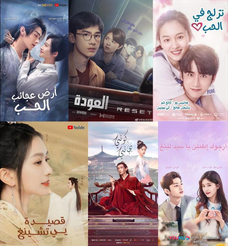 阿拉伯语海报(从左到右:《乐游原》《开端》《冰糖炖雪梨》《夜城赋》《与君歌》《一不小心捡到爱》)