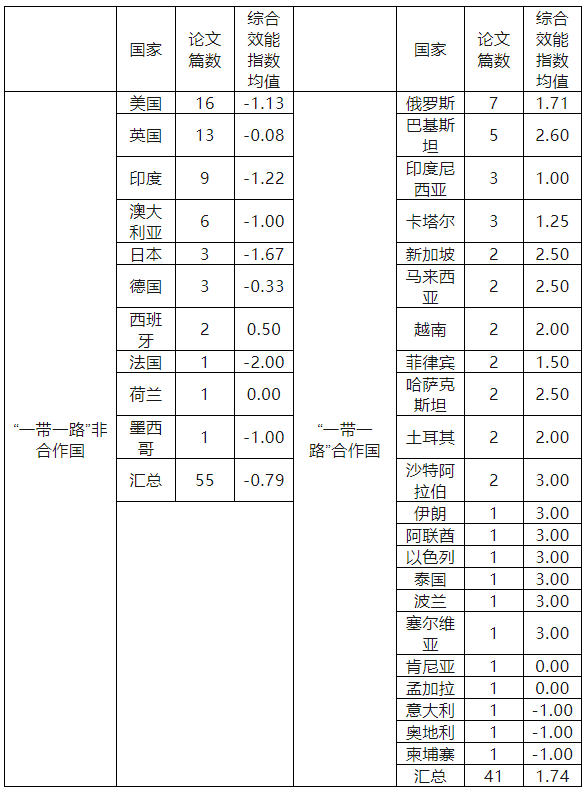 注:“综合效能指数均值”最高分为了3,表示非常正面;最低分为-3,表示非常负面。部分论文的研究对象包含多个国家。