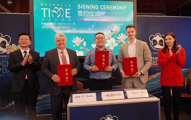 在中俄双方领导的共同见证下,五岸传播与俄罗斯SPB TV、Vintera TV就俄罗斯“白玉兰剧场”(英文名:Magnolia Time)项目举行了签约仪式。剧场内容涵盖电视剧、纪录片、综艺、动漫等300小时视听内容,并通过线下策划作品展映和交流活动,让更多俄罗斯民众感受中华文化,促进中俄民心相通与文明互鉴,推动中俄视听机构深度合作?!鞍子窭季绯 笔窃诠夜愕缱芫帧暗缡又泄绯 逼放葡钅靠蚣芟?,由五岸传播策划和运营的全媒体内容产品。
