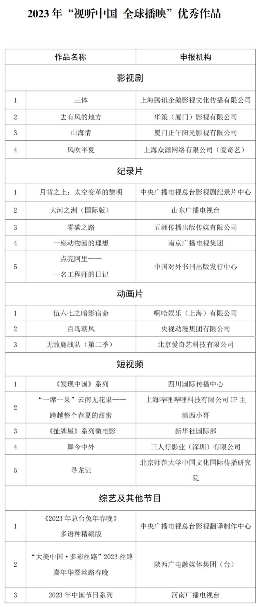 2023年“视听中国 全球播映”优秀作品、入围作品和优秀推广机构评选结果正式发布