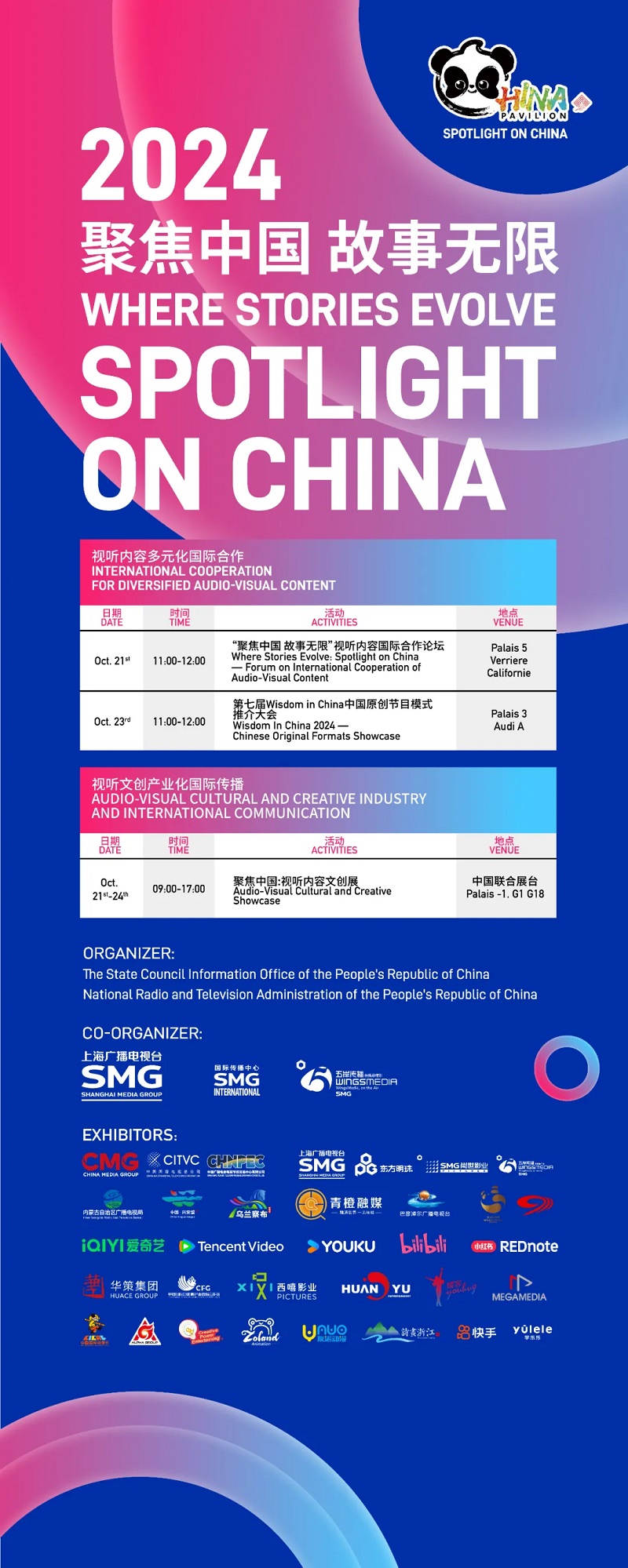 近年来,中外视听节目交流日益频繁,合作成果丰硕,在内容创意、技术创新、市场拓展等方面相互借鉴、共同发展,为全球观众奉献了丰富多彩的视听盛宴。今年是“中国联合展台”第21次与各国伙伴相约法国戛纳秋季电视节(MIPCOM),又正值巴黎奥运结束不久,中法建交60周年、中法文化旅游年系列庆?;疃苍诨鹑冉?。在热烈友好的氛围之中,“中国联合展台”愿与各国展商一道,借此电视节契机,共叙友好情谊,共话合作未来。