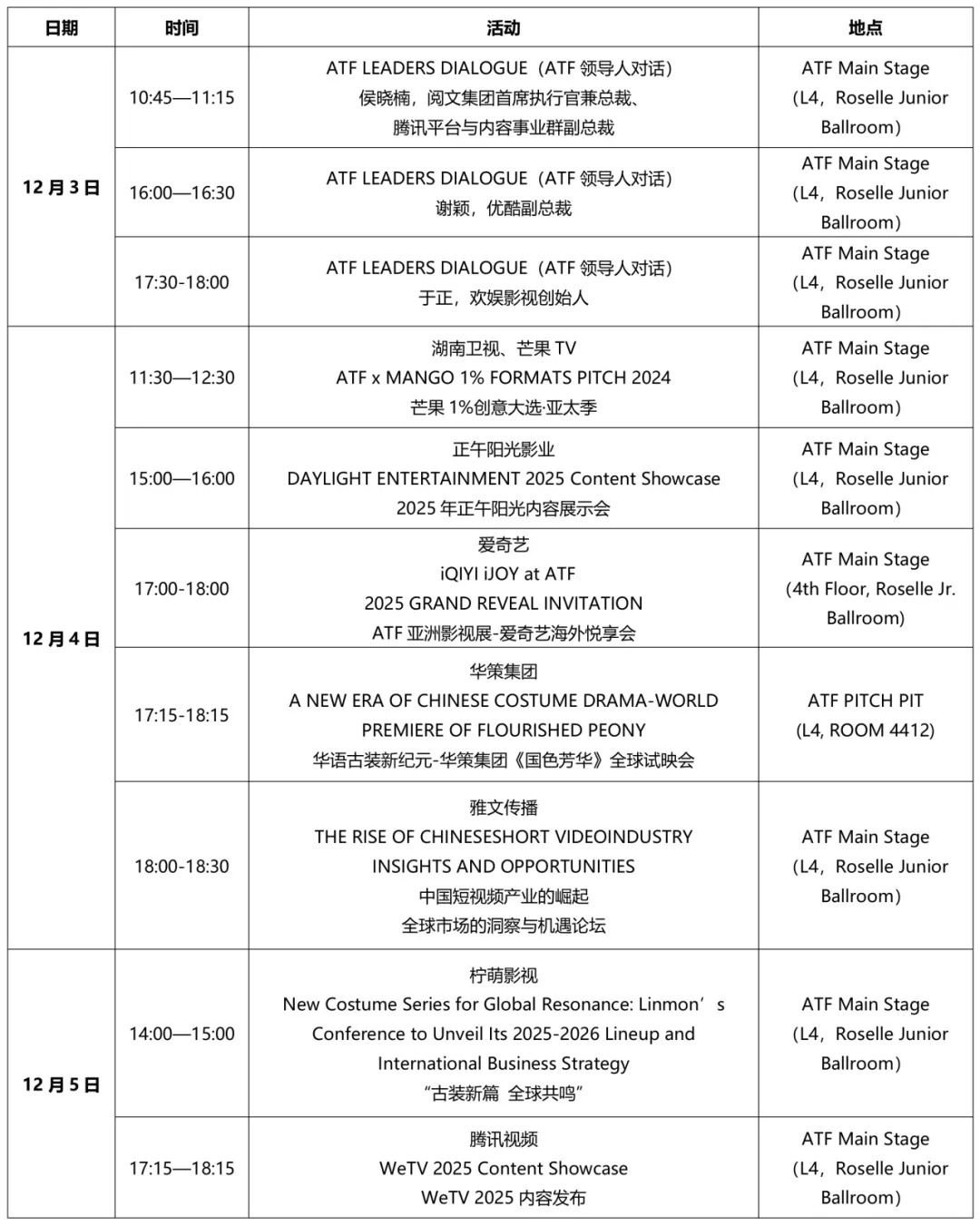 亚洲电视论坛与市?。ˋTF),是亚洲规模最大的娱乐内容市场,每年吸引大批来自全球的制作公司、发行公司、买家和投资者,共同探讨最新的商业机遇和市场趋势。