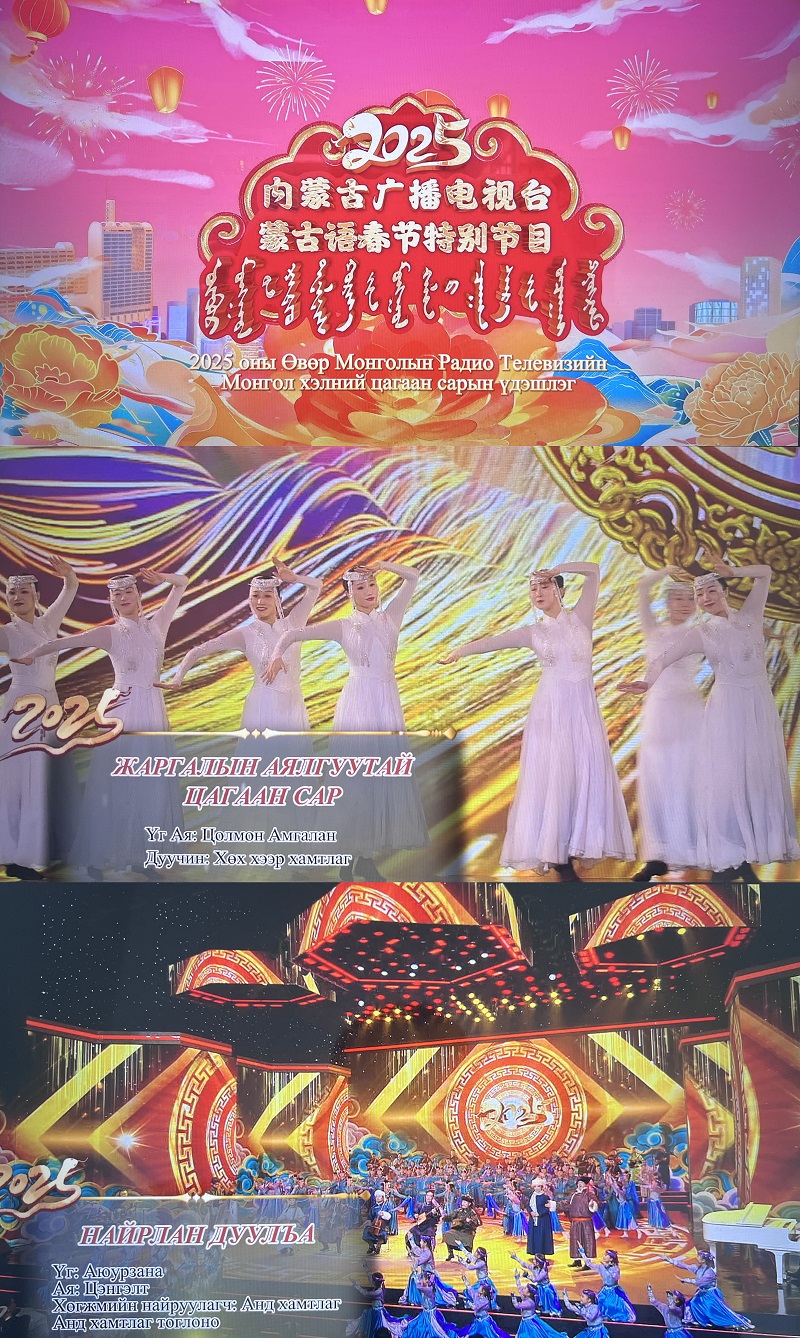 考虑到今年蒙古国春节比中国的晚一个月,目前已对2025乙巳蛇年内蒙古广播电视台蒙古语春节特别节目进行了二次创作,确定将于3月1日(蒙古国木蛇年正月初一)18:20分在蒙古国乌兰巴托电视台黄金时段播出。节目深入挖掘写春联、贴福字、吃年夜饭、拜年祝福等春节传统习俗,全方位展示中国春节的文化内涵,让蒙古国观众在自己的节日里,沉浸式感受原汁原味的中国春节,进一步加深中蒙文化交流,增进两国人民的情谊。