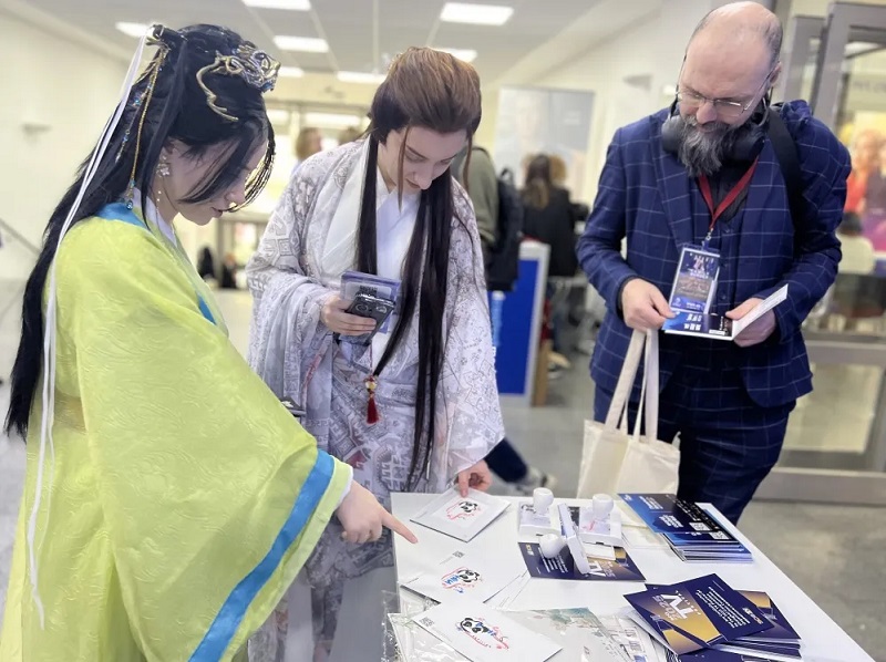 另外,“中国联合展台”还向参与互动的俄罗斯朋友送出了极具中国特色的古风团扇。丝绸扇面配上熊猫、翠竹和花草,东方韵味直接拉满,瞬间成为WCM的“香饽饽”,不少观众拿到手后反复端详,连连赞叹:“这简直是艺术品!”几位俄罗斯小姐姐现场学起“团扇半遮面”的古典范儿,“原来‘轻罗小扇扑流萤’的浪漫,连外国友人都懂!”
