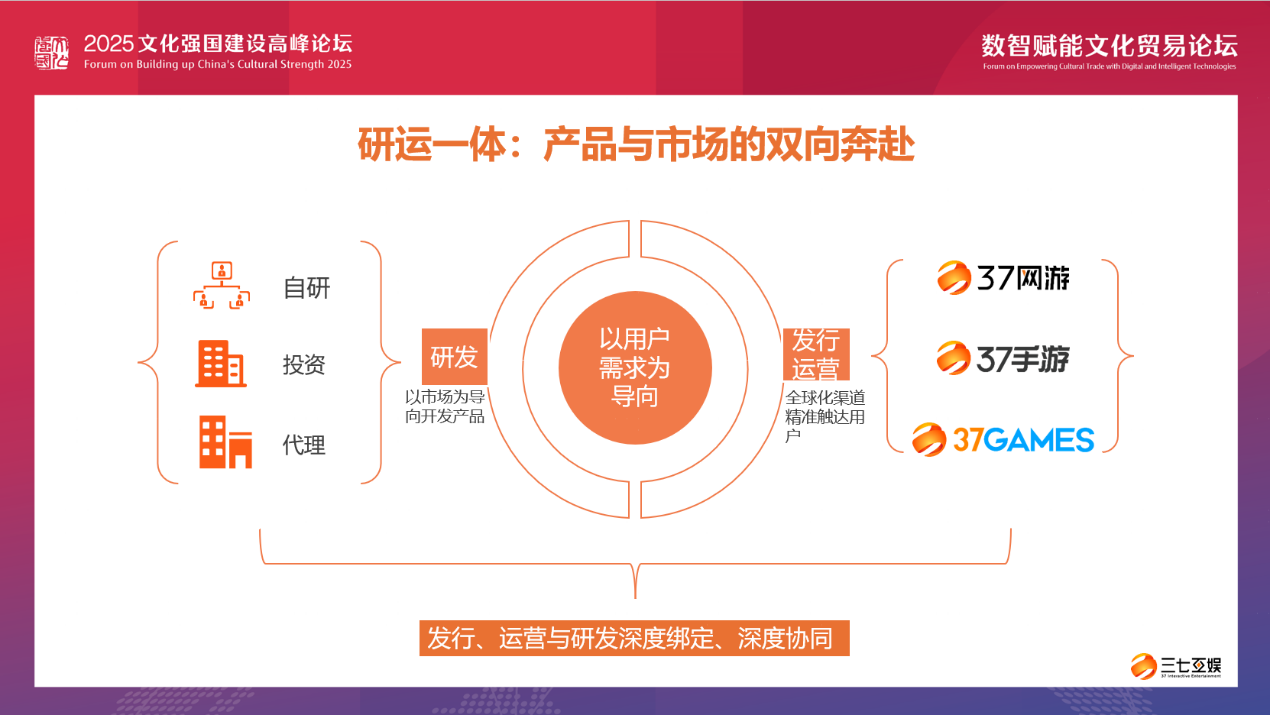 研运一体是三七互娱实现全球化的重要基础。以用户需求为导向,以市场为指引来开发产品。我们的研发、发行和运营团队深度绑定、深度协同。