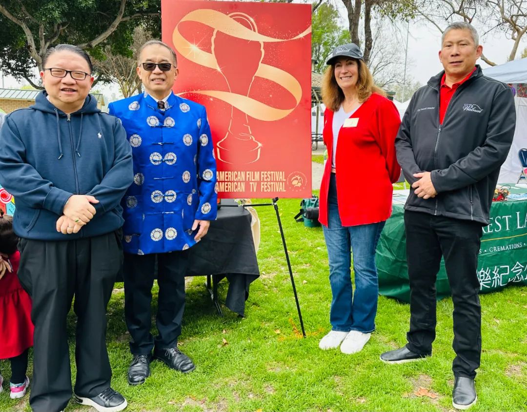 核桃市市议员秦振国(右)表示多年来中美电影节中美电视节组委会让民众通过视听作品加深了对中国的了解,在中美民间搭建了友谊和交流的平台