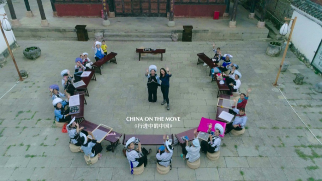 《行进中的中国》第一集围绕“中国脱贫攻坚工程”这一主题,以国际化的叙述方式,将偏远地区少数民族非遗绣娘发展产业、西部地区沙漠化治理如何与互联网有效结合、云南普洱农民种植咖啡豆、上海期货交易所通过金融产品精准扶贫天然橡胶产地四个故事娓娓道来,展现了非遗扶贫、生态扶贫、产业扶贫、金融扶贫等中国首创的扶贫方式。