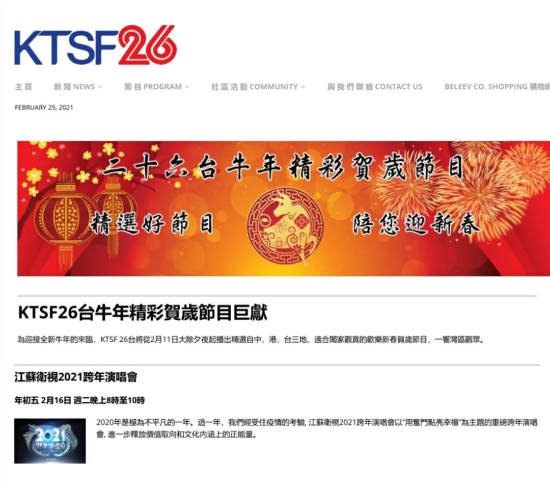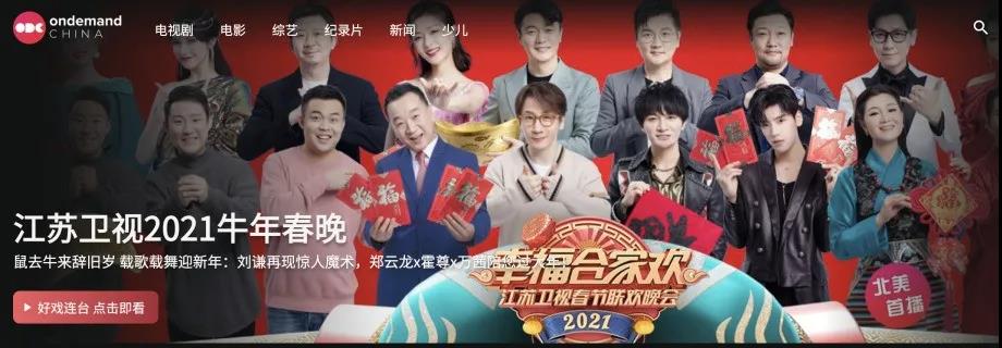 2021年春节期间,江苏卫视牛年春晚、元宵荔枝灯会、跨年演唱会等品牌节目,陆续登陆北美、东南亚等10余家海外媒体平台,向全球观众传递幸福年味儿。